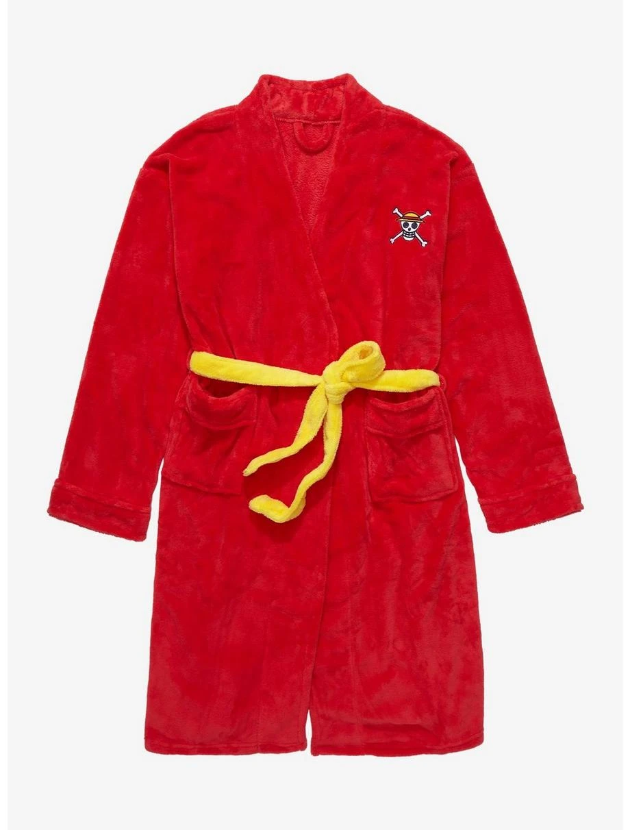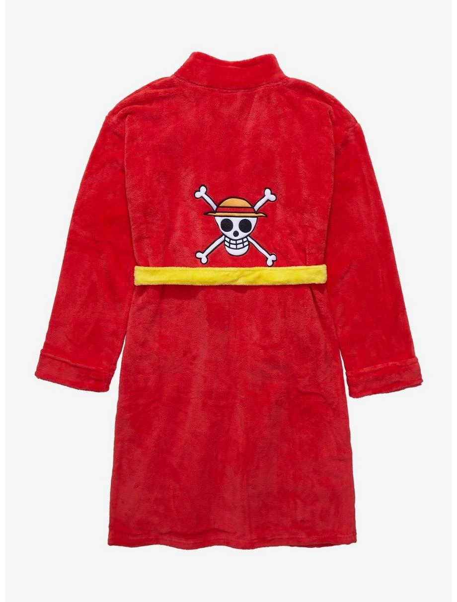 Cozy up in Straw Hat Crew style with this One Piece robe! With Monkey D. Luffy’s jolly roger as embroidered details on the chest and back, this robe is the perfect comfy addition for fans of the epic anime series.
